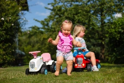 De verpakking bevat twee verschillende stickers voor de voorkant, zodat het kind de tractor naar eigen smaak kan ontwerpen.