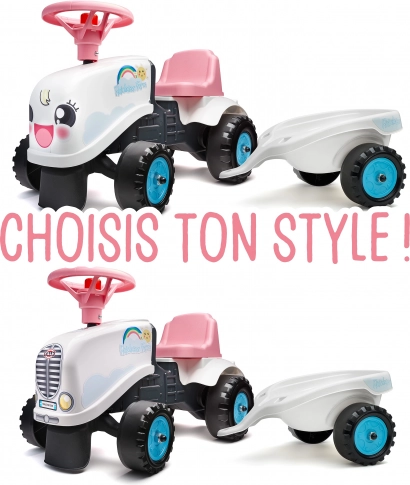Traptractor Falk Rainbow wit met aanhanger voor kinderen vanaf 1 jaar