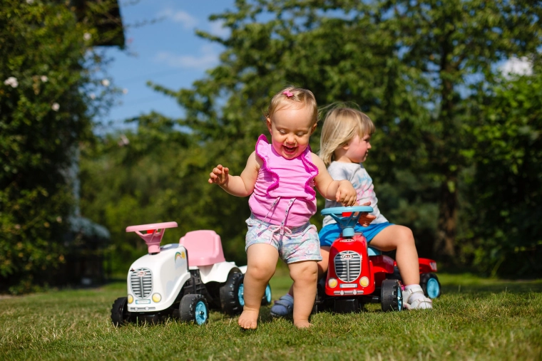 De tractor is uitgerust met een afneembare aanhanger, waardoor kleine boeren nog meer ruimte hebben voor spel en plezier.