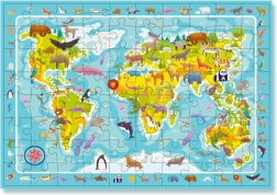Ontdek de wereld van de fauna met deze kleurrijke puzzel die kinderen niet alleen vermaakt, maar ook leert. Na het leggen kunnen ze het spel Zoek en vind spelen en de locatie van dieren op de wereldkaart bepalen. Educatieve puzzel met 80 stukjes die aandacht, fijne motoriek en logisch denken stimuleren.