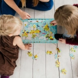 Deze educatieve puzzel met dieren van over de hele wereld biedt een leuke manier van leren voor kinderen vanaf 5 jaar. Dankzij de felle kleuren en duidelijke illustraties onthouden kinderen gemakkelijk de afzonderlijke soorten en hun verspreiding. Na het leggen van het plaatje kunnen ze verdergaan met het spel Zoek en vind, dat oriëntatie en kennis van aardrijkskunde ontwikkelt.