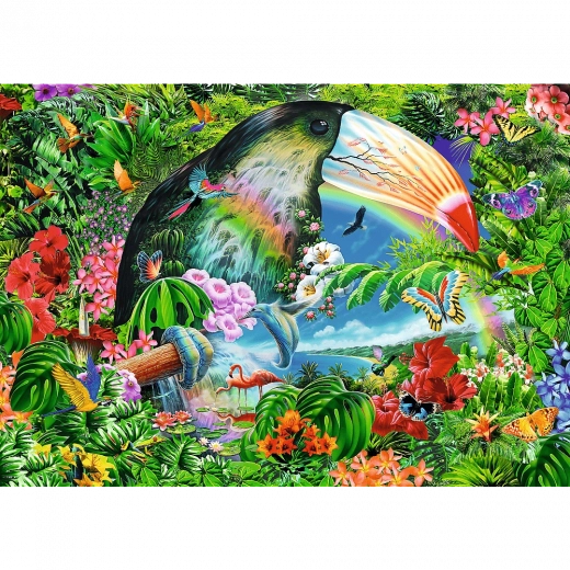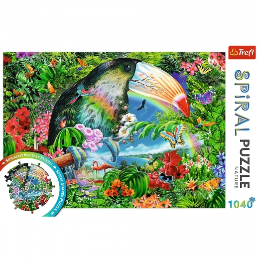 Spiraalpuzzel met tropische dieren, 1040 stukjes. Hoogwaardig gekalanderd papier, afmeting 68,3 × 48 cm, milieuvriendelijke productie. Een leuke en originele uitdaging.