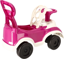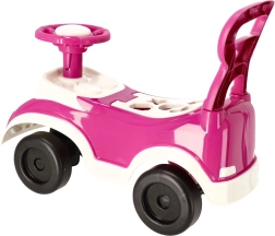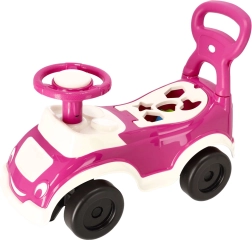 De multifunctionele 4-in-1 loopauto van Pilsan combineert rijden, een duwwagentje, een looptrainer en een educatieve vormensorteerder. Hij biedt een mechanische claxon, een afneembare rugleuning, opbergruimte onder de zitting en veilige, niet-schadelijke materialen voor vrolijk en veilig speelplezier.