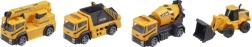 De set bevat vier verschillende bouwvoertuigen: een mixer, een vrachtwagen, een graafmachine en een kraanwagen, elk met realistische details en functies voor een verbeterde speelervaring.