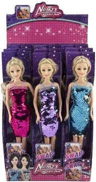Stijlvolle pop van 30 cm betovert kinderen met een glinsterende paillettenjurk die bij het strijken met de hand van kleur verandert. Dankzij het stevige lichaam houdt ze poses goed vast en is ze ideaal voor creatief en modieus spel. De verpakking is compact, perfect als cadeau voor kinderen vanaf 3 jaar.