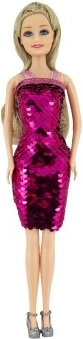 Deze elegante pop is klaar voor een feestje of modeshow. De jurk met dubbelzijdige pailletten zorgt voor direct plezier – met een simpele handbeweging verander je het kleureffect en creëer je in een oogwenk een nieuwe stijl. Het stevige kunststof lichaam maakt een stabiele houding en eenvoudig omkleden mogelijk.