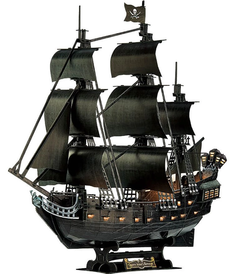 Adembenemend 3D-model van een zeilschip met LED-verlichting! Het schip Queen Anne's Revenge was het vaartuig van de beruchte piraat Zwartbaard. Ondanks de korte periode van gebruik versterkte het zijn status als de meest gevreesde piraat. De 3D-puzzel van het merk CubicFun is een bouwset met LED-verlichting, gemaakt van een speciaal materiaal: ongeveer 3 mm dik schuim bekleed met gelamineerd bedrukt papier.