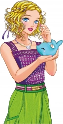 De make-updoos in de vorm van een dolfijn met een gouden kroontje is niet alleen mooi, maar ook praktisch. Kinderen kunnen hem eenvoudig meenemen en gebruiken wanneer en waar ze maar willen.
