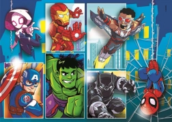 Geweldige puzzel voor kinderen met actievolle motieven van Marvel-superhelden die de ontwikkeling van vaardigheden en de aandacht van kinderen stimuleren.