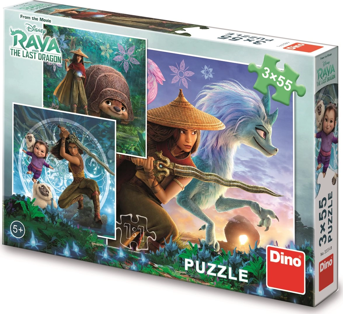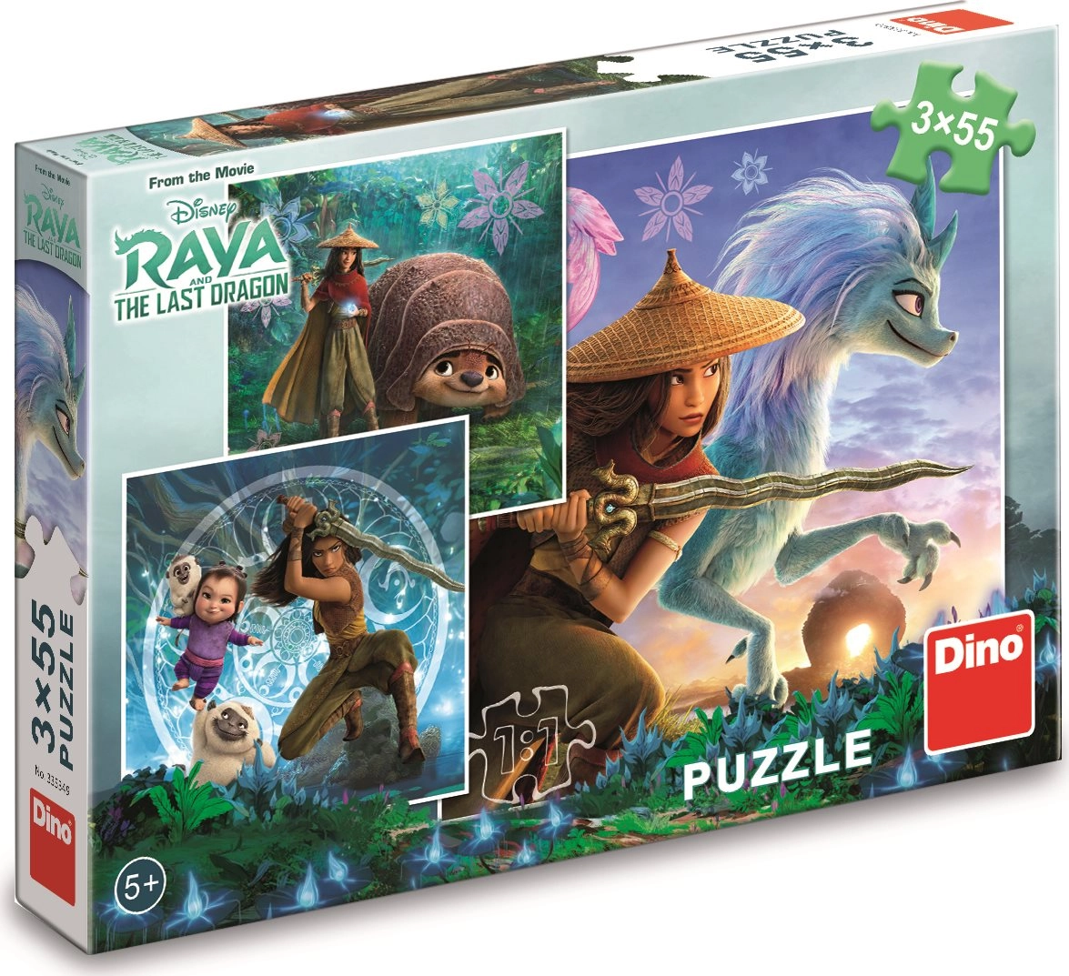Deze geweldige puzzelset bevat drie legpuzzels van elk 55 stukjes, die kinderen vanaf 5 jaar zullen enthousiasmeren. Kinderen kunnen zich onderdompelen in de wereld van heldin Raya, de trouwe draak Sisu en vriend Tuk Tuk. Deze puzzels zijn gemaakt van duurzaam en veilig karton dat ook wat ruwer gebruik aankan.