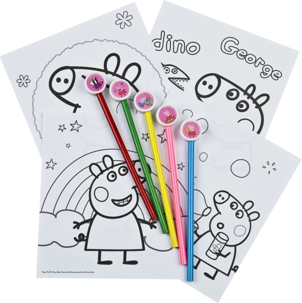 - 24 posters met Peppa Pig-motieven die kinderen naar eigen fantasie kunnen inkleuren.