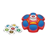 - De eerste speler die op zijn knop drukt en het juiste antwoord geeft, wint de kaart.