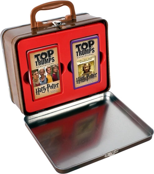Ga op een betoverende reis met het Top Trumps spel met de exclusieve Harry Potter-licentie. Dit spel laat je de eigenschappen van je favoriete personages vergelijken en tegelijkertijd je collectie uitbreiden. De speciale editie bevat twee kaartendecks die focussen op de films Vuurbeker en Gevangene van Azkaban, verpakt in een elegant metalen Griffoendor-koffertje.