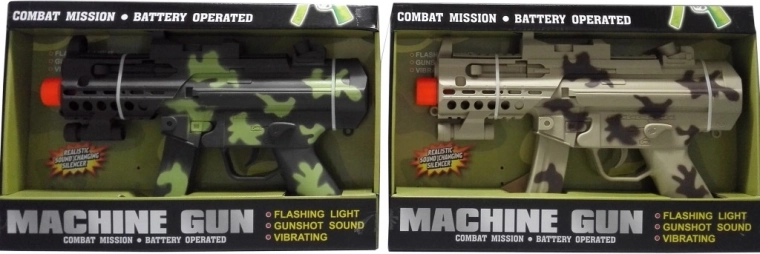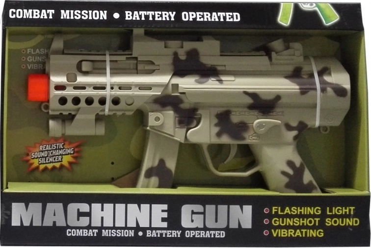 Deze leuke speelgoedmitrailleur voor kleine soldaten zorgt voor realistisch speelplezier dankzij lichteffecten en geluiden. Het speelgoed stimuleert verbeelding, coördinatie en creativiteit tijdens actievolle scenario’s. Werkt op 3× AA-batterijen (niet inbegrepen). Geschikt voor kinderen vanaf 3 jaar.