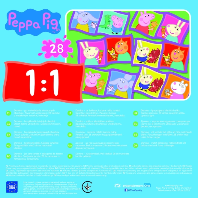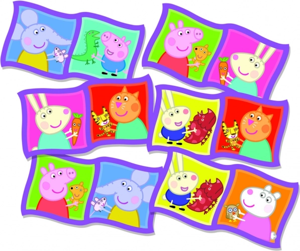 Domino Peppa Pig is een leuk en educatief spel voor kinderen dat geheugen, patroonherkenning en logisch denken ontwikkelt. Spelers proberen kaartjes met dezelfde afbeeldingen of hetzelfde aantal ogen aan te leggen. De winnaar is degene die als eerste al zijn kaartjes kwijt is of het spel afsluit. Dankzij de wisselende opstelling van de kaartjes biedt elk potje een nieuwe ervaring.