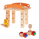 Deze hoogwaardige houten set stelt kinderen in staat een werkplaatskrukje en andere originele modellen te bouwen. Dankzij schroeven, moeren en tandwielen ontdekken kinderen de principes van eenvoudige mechanica en trainen ze concentratie en handigheid. Het krukje is stabiel en biedt dankzij het doordachte systeem van gaten en verbindingen tal van combinaties.