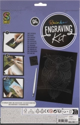 In de verpakking vind je alles wat je nodig hebt: een afbeelding van 25 × 20 cm, een kunststof kraspen met metalen punt en een oefenkaartje om streken en texturen te oefenen.