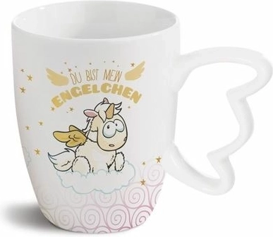 Stijlvolle porseleinen mok met een eenhoornmotief en elegant Angelia-design met een inhoud van 310 ml. Hoogwaardig porselein, aangenaam drinken en een tijdloze uitstraling voor elke dag. Gemaakt in Duitsland.