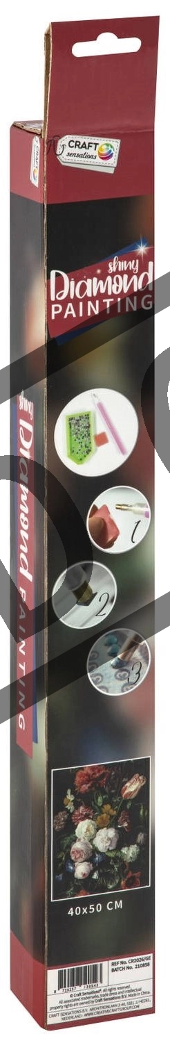 Gebruikstip: Trek de folie van het canvas geleidelijk in kleine delen los, zodat de kleeflaag schoon blijft en de steentjes goed hechten. Na afloop kan het schilderij worden ingelijst (lijst niet inbegrepen).