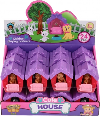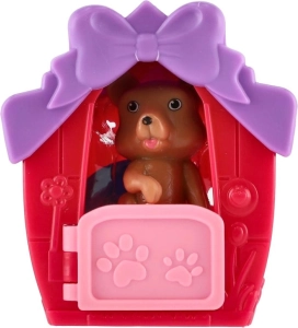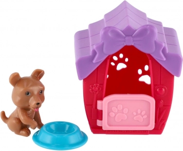 Schattige set voor kleine dierenvrienden met een plastic hondenhokje voor een puppy met openslaande deurtjes en een voerbak. De compacte afmetingen van 6 × 7 cm maken het een ideale speelset voor thuis en onderweg. Geschikt voor kinderen vanaf 3 jaar – stimuleert fantasie en rollenspel.