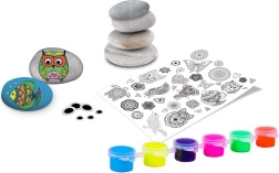 Deze complete creatieve set verandert gewone steentjes in sprankelende decoraties. Dankzij de neonverven komen je motieven tot hun recht in daglicht én onder UV-licht, terwijl transferstickers en zelfklevende oogjes je creaties karakter geven. Alles wat je nodig hebt zit in één doos – gewoon openen en aan de slag.