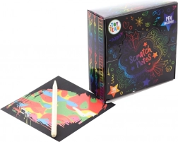 De set bevat alles wat je nodig hebt om de wereld van krassen te ontdekken. Elk plaatje heeft een afmeting van 9x9 cm en maakt het mogelijk om prachtige motieven te creëren door eenvoudigweg weg te krassen. De set is uitgerust met een houten kraspen waarmee je de gekleurde laag onder het zwarte oppervlak kunt onthullen. Alles is zorgvuldig verpakt in een doos die alle onderdelen gemakkelijk herbergt.