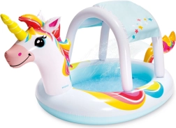 Gun kinderen veilige waterpret in de tuin met dit betoverende zwembadje in eenhoorn-stijl. De instaprand is laag en de wanden met een hoogte van 18 cm zorgen voor comfortabel en veilig spetteren voor de kleintjes. De geïntegreerde watersproeier zorgt voor aangename verkoeling op hete dagen.
