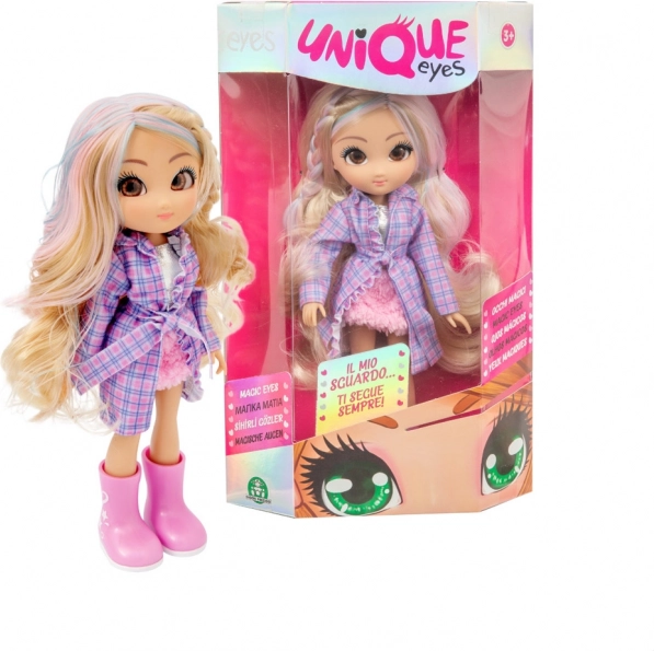 Ontdek de magie van de Unique Eyes-pop – een stijlvolle pop van 25 cm met magische ogen die je volgen, lange, zijdezachte haren en een modieuze outfit met schoenen. Verkrijgbaar in 3 verschillende uitvoeringen, ideaal voor kinderen vanaf 3 jaar.