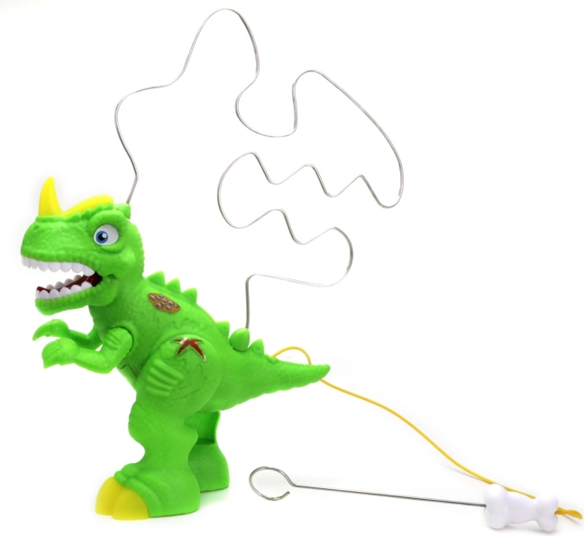 Het elektronische spel “Dino-doolhof” is een geweldige keuze voor thuisplezier, verjaardagsfeestjes of familieavonden. Met het stokje met haakje aan het uiteinde probeer je de baan te voltooien zonder ook maar één aanraking – raak je de rand, dan laat de dinosaurus van zich horen en licht hij op. Een simpel principe met veel spanning en héél veel plezier!
