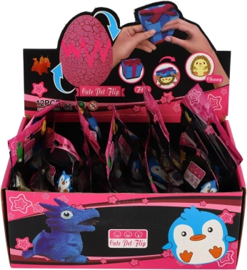 Ontdek het plezier van verrassingen met dit slimme siliconen “cadeautje” dat je door omkeren verandert in een dieretje – dat kan een kuikentje, kikker of pinguïn zijn. Het speelgoed is prettig zacht, antistress en dankzij het doordachte design kun je van het “cadeau” ook een standaard maken om het neer te zetten. Geweldig voor kinderen vanaf 3 jaar, ter ontwikkeling van de fijne motoriek en voor sensorisch spel.