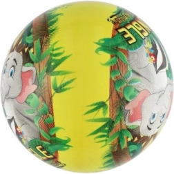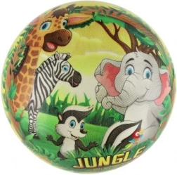 De bal heeft een vrolijk ontwerp met een junglemotief, waaronder getekende dieren zoals een olifant, giraffe en zebra.