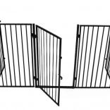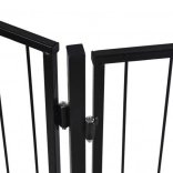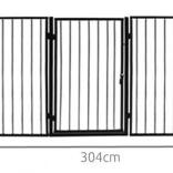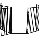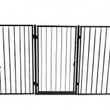 Praktisch veiligheidshek voor de haard dat kinderen en huisdieren beschermt tegen hete oppervlakken en open vuur. Dankzij vijf scharnierende segmenten past het zich eenvoudig aan de ruimte aan, het heeft een eenvoudige wandmontage, een vergrendeling tegen onbedoeld openen en is compatibel met de meeste haarden. Robuuste stalen constructie in zwarte kleur, totale breedte 304 cm en hoogte 74,5 cm bieden betrouwbare bescherming in de woonkamer.