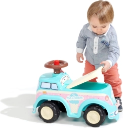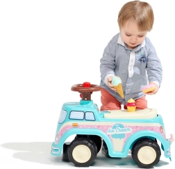 Deze loopauto in de vorm van een ijswagen heeft een aantrekkelijk design dat ieder kind aanspreekt. Voorzien van een stuur met claxon voor uitstekende controle en plezier.