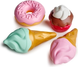De set bevat twee ijsjes, een cupcake en een donut, die de fantasie stimuleren en echte ijsverkoop-avonturen nabootsen.