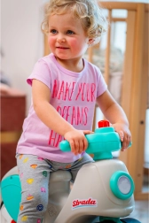 Loopfiets Strada Retro brengt herinneringen terug aan speelgoed uit de jaren 70 in een nieuw, modern jasje. Hij is ideaal voor kinderen vanaf 1 jaar en kan tot 25 kg dragen. Dankzij de stille wielen met een elastomeerlaag biedt de loopfiets een soepele en stille rijervaring, terwijl de brede wielen voor stabiliteit zorgen.