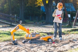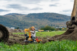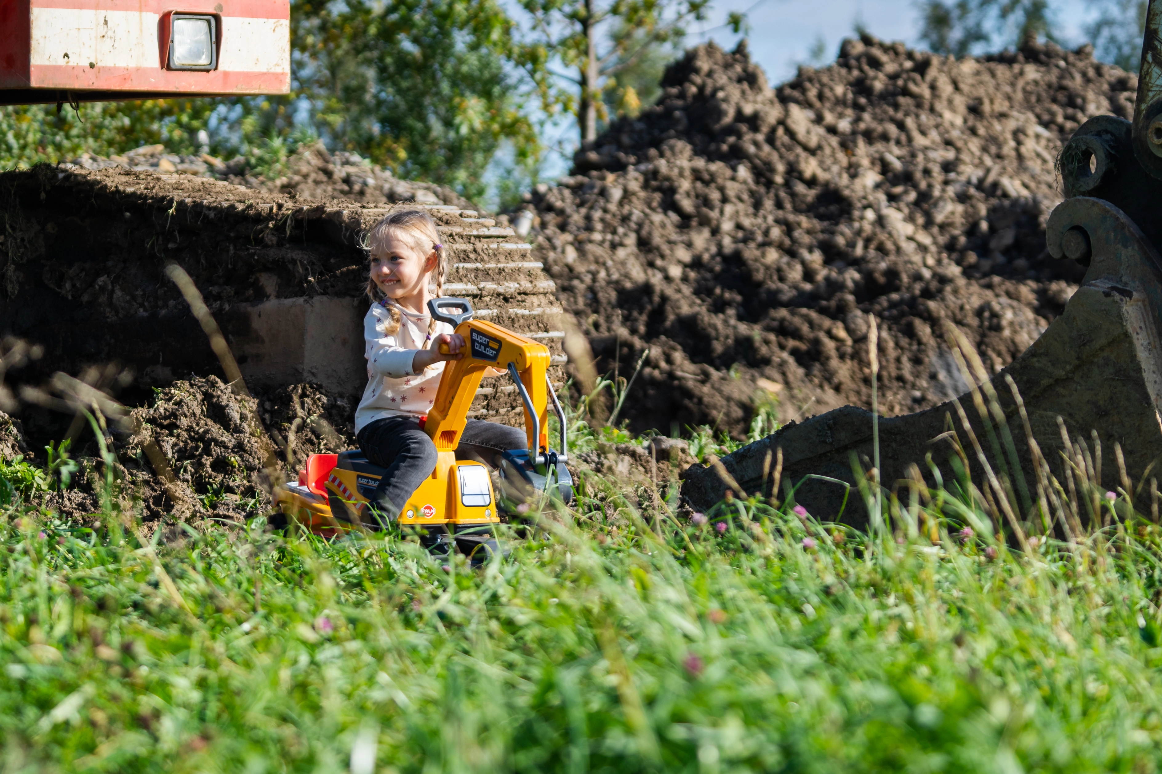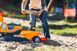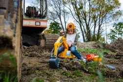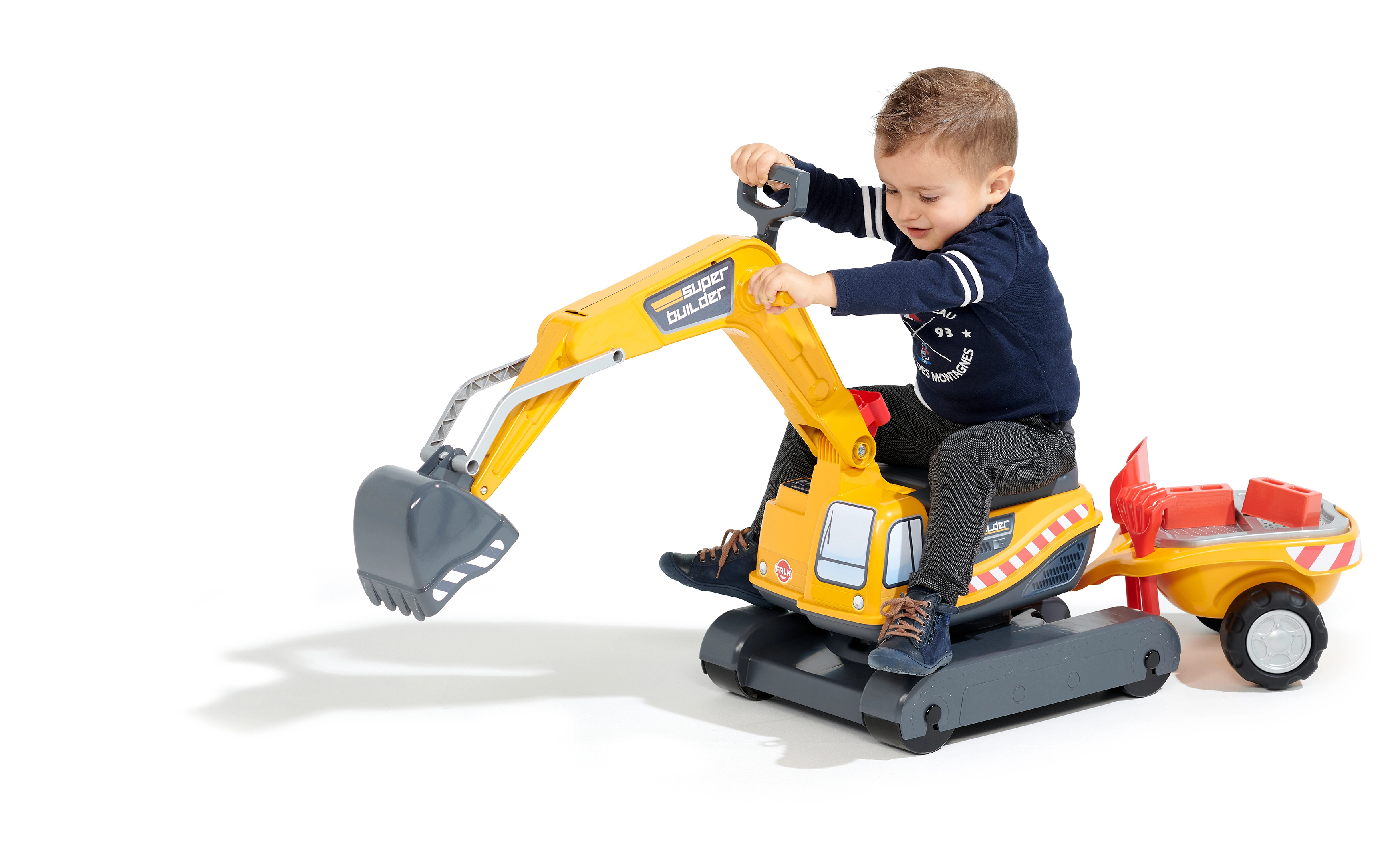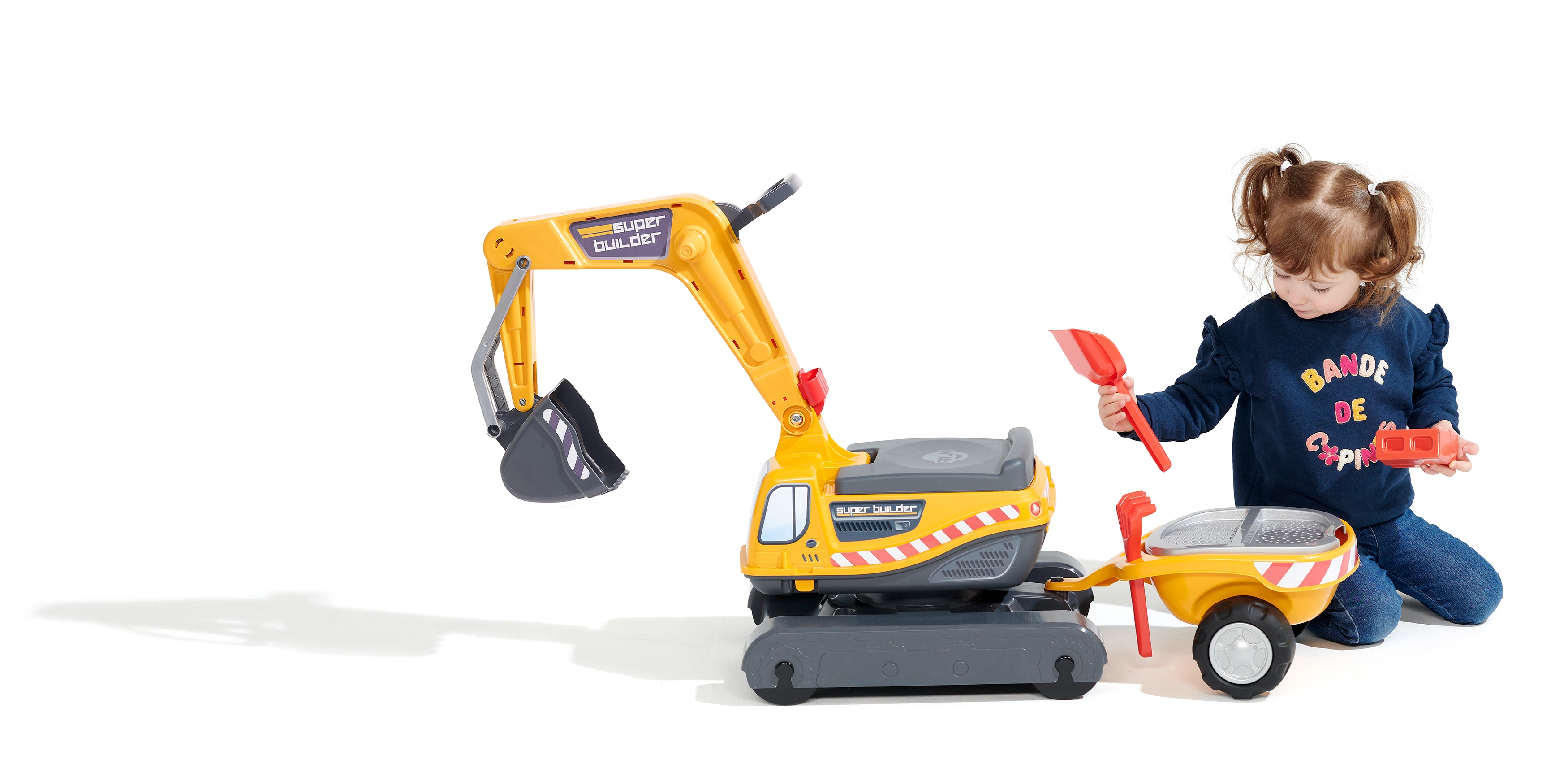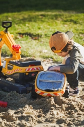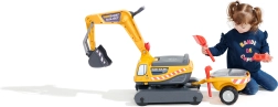 Loopfiets Super rupsbandgraafmachine oranje met functionele graafbak, imitatie van rupsbanden, aanhanger en een speelset voor in het zand – 2× zandvorm in de vorm van een baksteen, een schepje en een harkje. Gemaakt van hoogwaardig en duurzaam plastic. Afmeting 85×38×67 cm. Leeftijd 3+. Alle Falk-tractoren zijn getest tot 50 kg – volgens de eisen van de Europese normen. Gemaakt in Frankrijk.