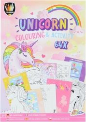 Boek vol met kleurplaten en activiteiten met een eenhoorn thema, dat plezier biedt met tekenen, kleuren en het plakken van stickers op 64 pagina's.