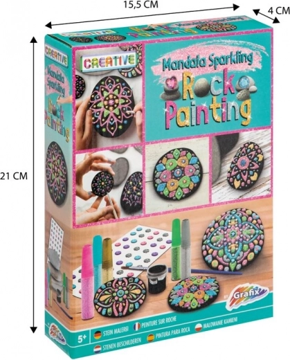 Ontdek ontspannend en creatief plezier met schilderen op steentjes. De GRAFIX-set biedt alles wat je nodig hebt om stralende mandala’s en originele decoraties te maken – van gladde steentjes en penseel met zwarte verf tot metallic verf en glinsterende steentjes voor extra versiering. Ideaal voor kinderen en volwassenen die hun creativiteit en fijne motoriek willen ontwikkelen en willen genieten van rustgevend knutselen.