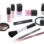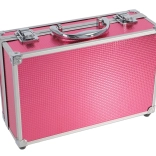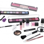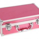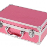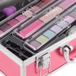 Cosmetica‑koffertje met aluminiumframe Marry Berry met geïntegreerde spiegel – in totaal 38 stuks accessoires. Bevat 18× oogschaduw, 2× blush, 1× highlighter, 1× wenkbrauwwax, 2× lipgloss, 3× nagellak, 1× mascara, 1× oogpotlood, 1× lippotlood, 2× dubbelzijdige applicators voor oogschaduw, 1× dubbelzijdige applicator voor wenkbrauwen, 1× blushkwast, 1× ronde spiegel en 1× mini make‑upsponsje. Dermatologisch getest, voldoet aan de strenge EU‑normen.