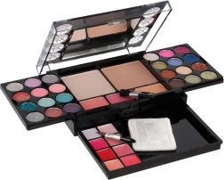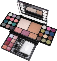 Ontdek een compact en elegant palet dat alles combineert voor een complete make-up. Het brede scala aan oogschaduwnuances, crèmige lipglossen en glitters maakt het mogelijk om zowel een subtiele daglook als een opvallende avondlook te creëren. Dankzij de ingebouwde spiegel en meegeleverde applicators heb je alles bij de hand, waar je ook bent.