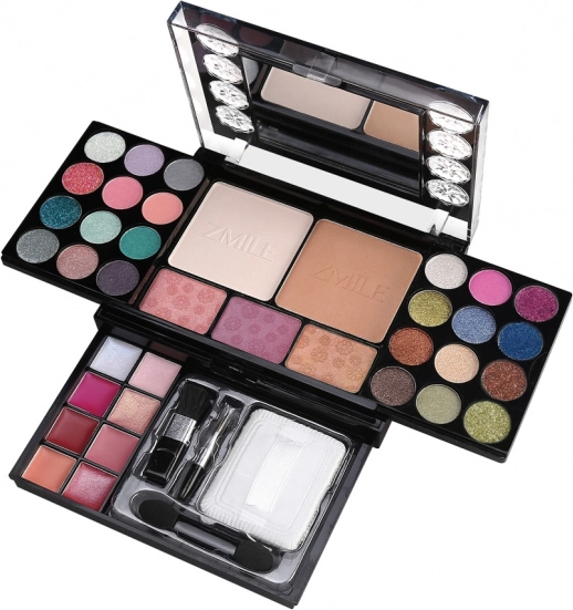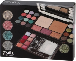 Universele cosmetische palet ZMILE Diamonds voor dagelijkse en avondmake-up biedt 16 oogschaduws, 8 crèmige lipglossen, 8 glittercrèmes en 2 poeders. Praktische verpakking met geïntegreerde spiegel en applicators/kwast is ideaal voor op reis, dermatologisch getest en voldoet aan de strenge EU-normen.