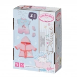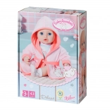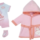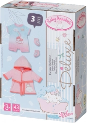 Laat je Baby Annabell betoverende momentjes beleven met deze stijlvolle badjas en pyjama. De badjas is versierd met vleugeltjes, waardoor het niet alleen modieus is maar ook een comfortabele accessoire voor het spel. Onder de badjas draagt de pop een korte onesie met een print van een schaapje dat geniet van een regenboogdouche. Om de voetjes lekker warm te houden, bevat de set ook roze sokken met vleugeltjesmotief.