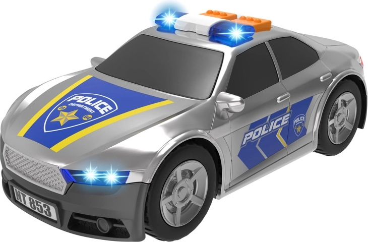 Snel ter plaatse met de Teamsterz politieauto. Het autootje heeft lampen en realistische motor- en sirenegeluiden die met één druk op de knop worden geactiveerd. Het autootje wordt geleverd in zilver en blauw met gedrukte politiegrafische details en heeft vrij draaiende wielen, zodat je er overal mee kunt spelen. Deze politieauto is het perfecte cadeau voor elke kleine autoliefhebber en biedt uren fantasierijk speelplezier. Vereist 3 x LR44-batterijen (meegeleverd). Geschikt voor leeftijd 3+.