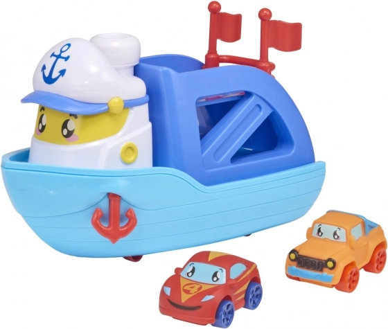 Teamsterz Kleine veerboot is een speelse speelgoedset ontworpen voor kleine avonturiers. Bevat een kleurrijke veerboot en twee kleine autootjes met vriendelijke gezichtjes, ideaal voor plezier in bad.