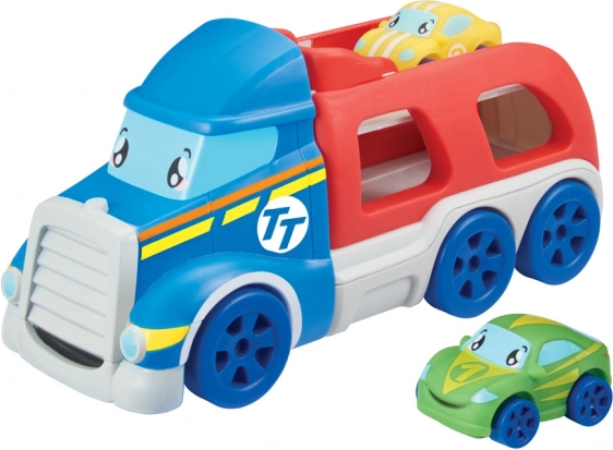 De auto’s zijn gemakkelijk vast te pakken en ontworpen in heldere, speelse kleuren. De transporter biedt plaats aan tot 4 auto’s en heeft een vrolijk uiterlijk dat elk kind zal bevallen.