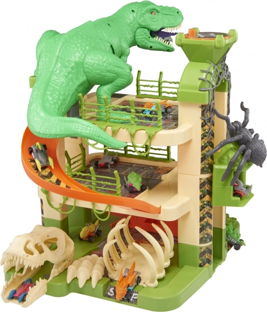 - Garage met kooi, dinoschedel en lanceerder; 1 metalen autootje
