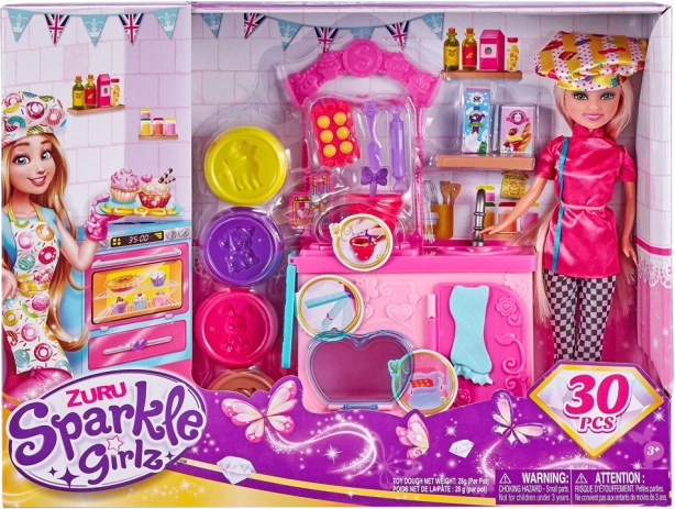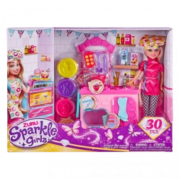 De Sparkle Girlz bakker speelset is ideaal voor kleine patissiers en bakkers die houden van culinaire avonturen. De pop is klaar om te bakken en dankzij de uitgebreide set accessoires kunnen kinderen echte keukenactiviteiten nabootsen – van het uitrollen van deeg tot het versieren van creaties.