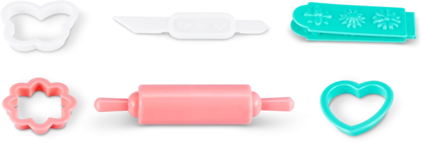 In de verpakking zitten 30 praktische accessoires, zoals bakvormpjes, een deegroller en diverse decoraties die fijne motoriek, verbeeldingskracht en rollenspel stimuleren. De set is een geweldig cadeau voor kinderen die graag creëren en doen alsof ze bakker zijn.