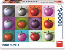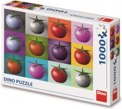 Maak thuis je eigen kunstwerk. Het speelveld is een kleurrijke popart-collage van tomaten in een raster, wat zorgt voor overzichtelijk sorteren op kleur en daardoor vloeiender leggen. Het ontwerp is grappig, vindingrijk en modern, waardoor de voltooide puzzel ook perfect geschikt is om in te lijsten.