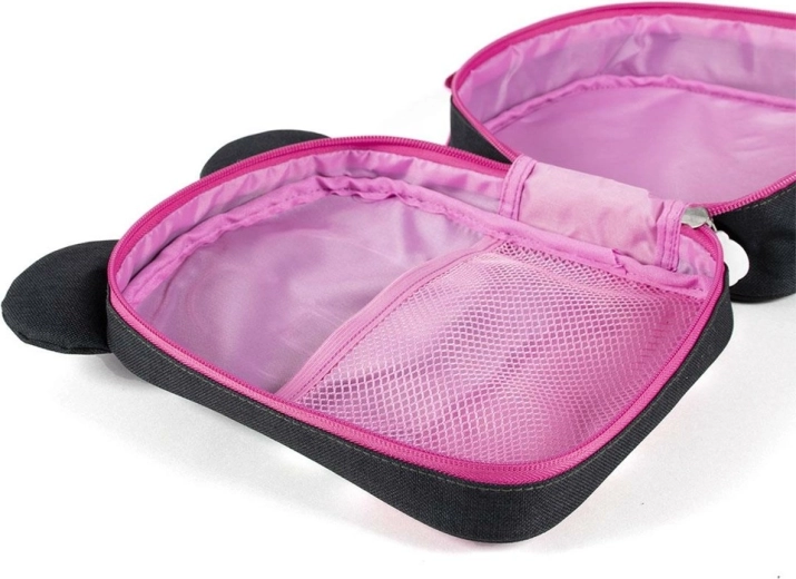 Lunchrugzak met Minnie-oortjes. Materiaal: 90% polyester + 10% PU. Afmeting: 19×23×8,5 cm.